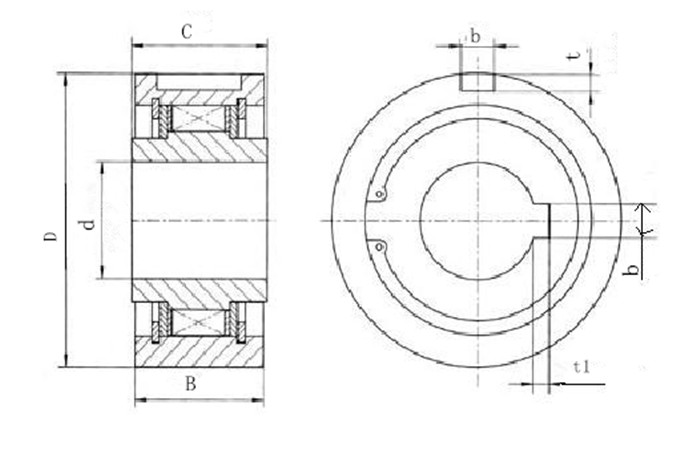 CKA型主要用于較高超越極限轉速(800~2500r/min)、傳遞中等轉矩(30N.m~4000N.m),其特點單向自鎖可靠,反向解脫輕便。多用于包裝機械 、印刷機械、食品機械、農業機械、醫療機械和各種斗式提升機、皮帶運輸機、紡織機的機械傳動中,使用時配合軸承同軸并排安裝,以承受軸向負載與徑向負載,出廠時已加注潤滑脂。內環、外環與工件用鍵聯接。