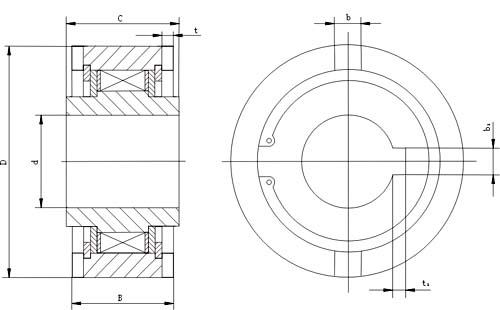 CKC型超越離合器為無軸承支撐外環兩端面帶鍵槽的楔塊式單向超越離合器 。使用時需配軸承安裝,以承受軸向和徑向負載,徑向尺寸與標準軸承尺寸相同。內環與軸用鍵連接,外環兩端面有止動槽用于固定外環與機架以傳遞轉矩。適用于極限轉速500~1500r/min,傳遞中等轉矩(30N.m~4000N.m),其特點單向自鎖可靠,反向解脫輕便。多用于包裝機械、印刷機械、食品機械、農業機械、醫療機械和各種斗式提升機、皮帶運輸機、紡織機的機械傳動中。
