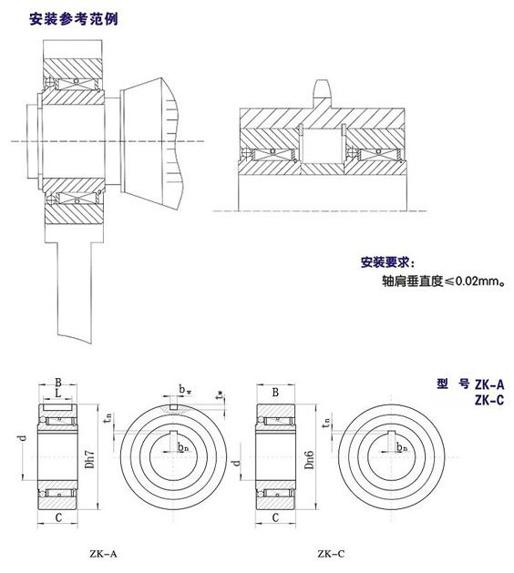 ZK型楔塊式單向離合器,是由普通楔塊式單向離合器與單列深溝球軸承有機組合而成的。它既具備普通